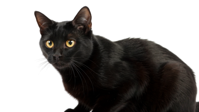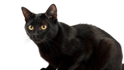 Mysterious Black Cat with Piercing Green Eyes isolated on a transparent background