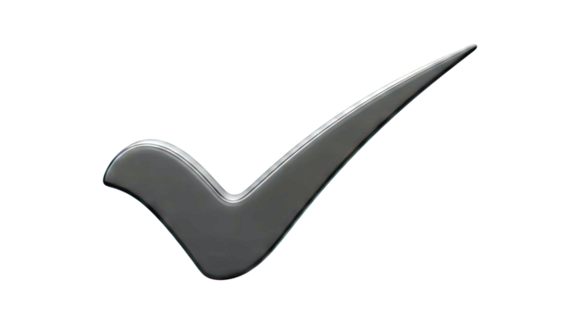 Black check mark on transparent background symbolizes accuracy