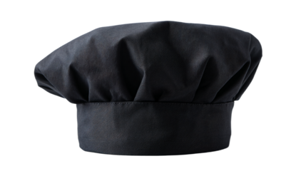 Confident male chef in black uniform standing with arms crossed, isolated on transparent background, representing culinary expertise and professional kitchen staff