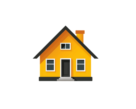 A bright yellow 3D rendered house model, isolated on a black background