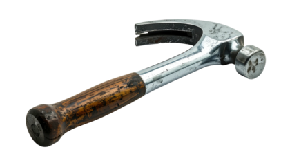 Claw hammer featuring a bold red handle and textured black grip. Ready for various building, woodworking, and maintenance tasks