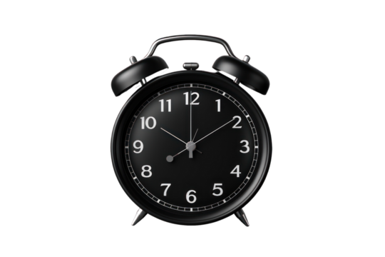 PNG, Alarm o’clock, black wall clock, isolated on white background