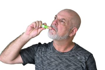 Older couple enjoying hot drinks in winter clothes, transparent background
