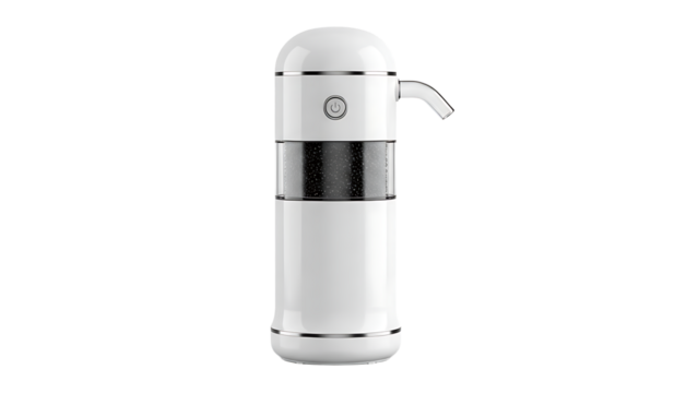 Modern White Electric Coffee Grinder with Black Grinding Chamber and On/Off Button for Home Kitchen