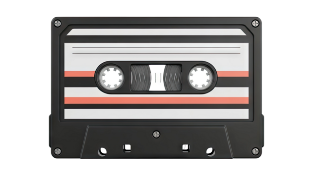 Cassette tape with coral and black stripes
