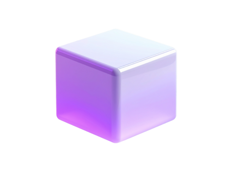 Rendered 3D, glossy gradient-colored cube isolated on black backdrop