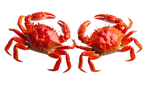Stone crab claws displaying orange shells and black pincer tips, a popular seafood delicacy with transparent background