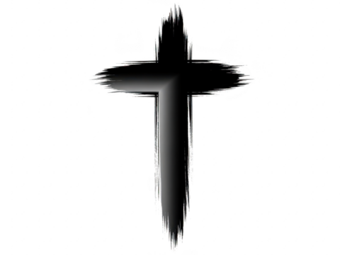 Heart shape containing a centered christian cross, all depicted in black lines on a white background, cutout
