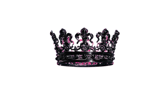 An elegant shiny black crown with intricate peaks, symbolizing royalty and power.