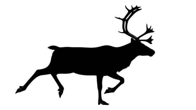 deer silhoElegant black deer silhouette vector with large antlers. Clean minimal design on transparent background. Perfect for Christmas cards, winter logos & holiday decorations.uette vector