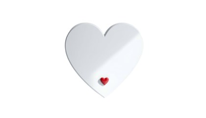 White heart silhouette on black, with small red heart at its base. Minimalist design