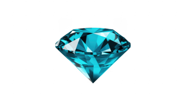 Large aquamarine diamond gemstone on black blue faceted isolated on a transparent background