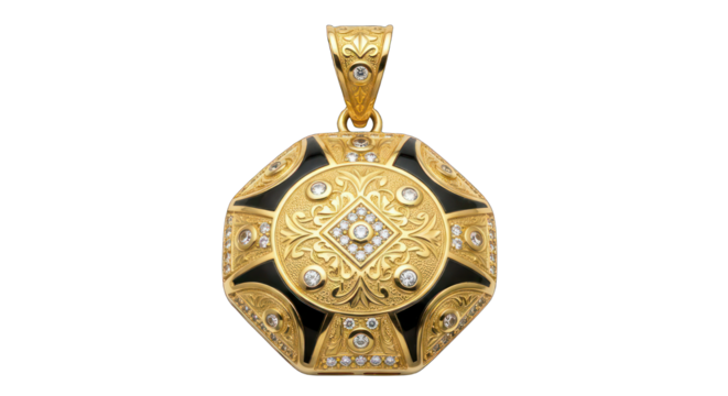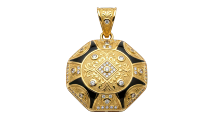 Intricate diamond shape gold green design on transparent background