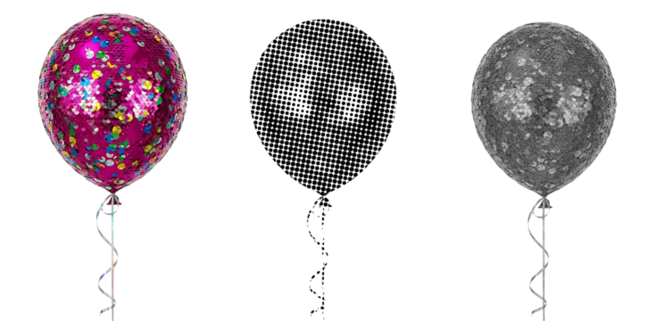 a festive arrangement of black and gold circles scattered against a white background creating a celebratory and elegant design suitable for invitations or party decorations