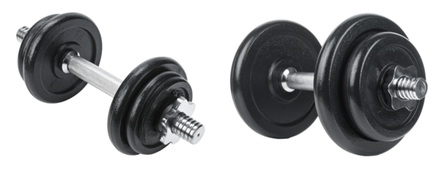Black dumbbell isolated on transparent background a weight training equipment for building muscle and strength, used in fitness and bodybuilding exercises