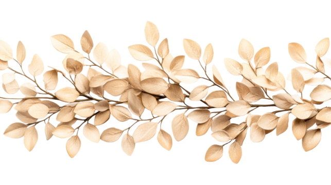 Elegant beige leaves branch for decoration and background, cut out transparent