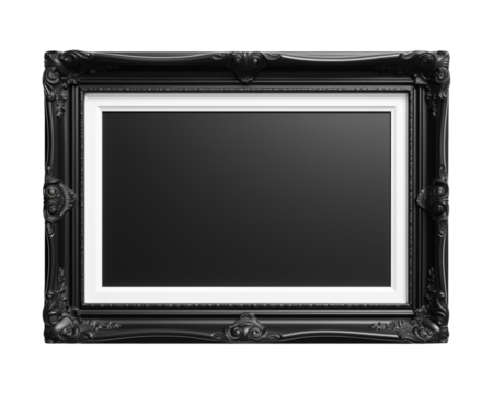 Rectangular picture frame. Old wooden frame, vintage style, with empty space and isolated transparent background with png.