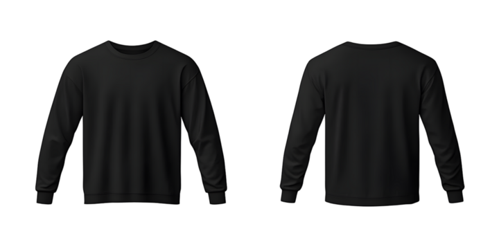 Black classic t-shirt front and back in pure black without logo on transparent background