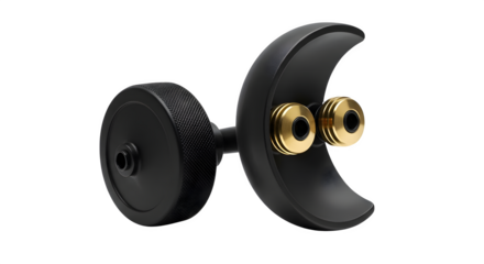 Black, gold design with grainy texture shows machine element with precise detail for product shots or technical presentations.