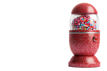 Vibrant Red Gumball Machine Dispensing Colorful Candies on a Black Backdrop
