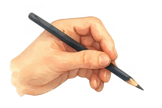 Hand holding a black pen on a transparent background, writing tool isolated