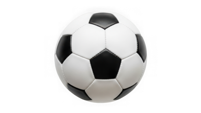 Classic black and white soccer ball isolated on transparent background