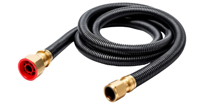 Coiled Hose: A neat coil of a black hose,perfect for irrigation