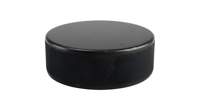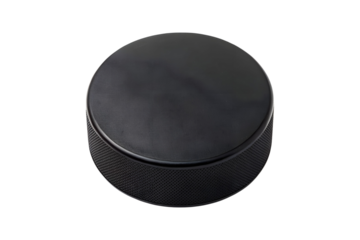 Isolated black ice hockey puck on neutral gray background in high detail transparent background