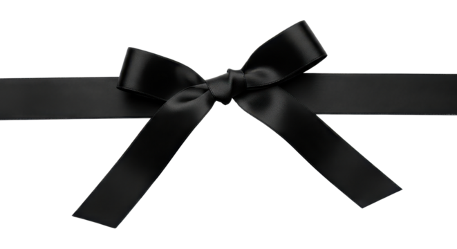 Isolate transparent with black velvet ribbon tied into a bow in horizontal layout, black velvet ribbon tied into a bow with realistic texture, black velvet ribbon tied into a bow for PNG die-cut.