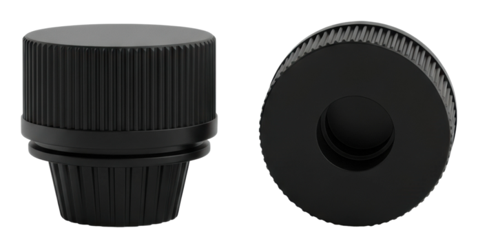 Sleek black control knob on transparent background
