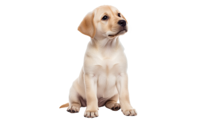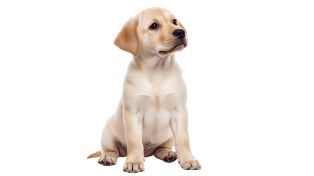 Golden retriever dog sitting and looking forward, isolated on transparent background, full body