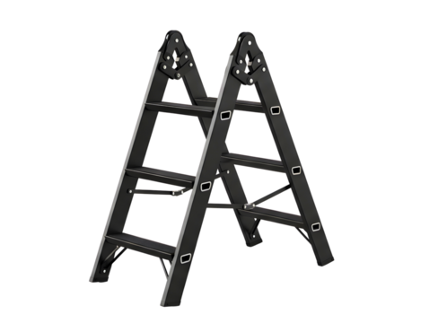 Businesswoman climbing ladder with briefcase, silhouette illustration, transparent background