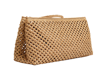 Woven straw handbag with intricate lattice design against black background fashion accessory style