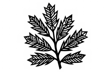 Stylized black leaf drawing with detailed line work, presenting a nature motif with a transparent background