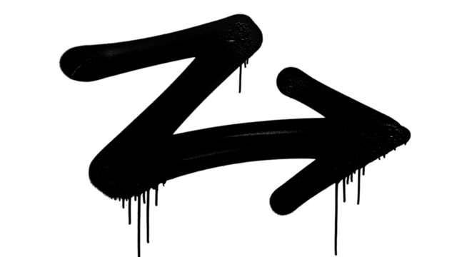 Illustration of black graffiti arrow symbol with dripping paint effect, isolated on transparent background