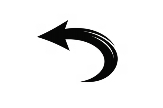 Black curved arrow pointing left, indicating actions like undo, previous, or reply. Transparent background