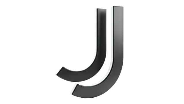 Two stylized black J letters with glossy finish on a white background