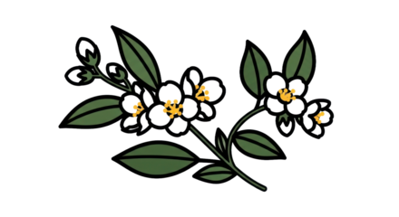 Black line with leaves on transparent background illustration