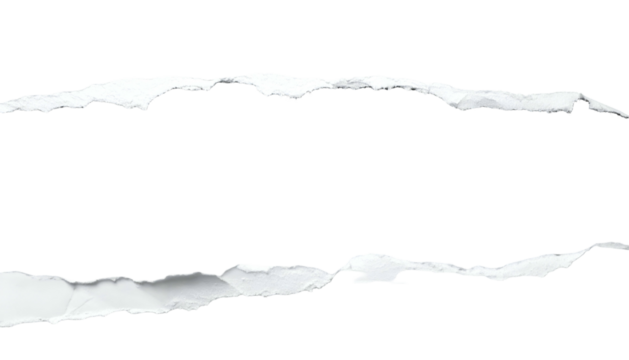 Torn white paper strips reveal black void. Jagged edges create a textured, abstract background