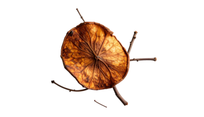 Dried lotus seed pod with stem on black background