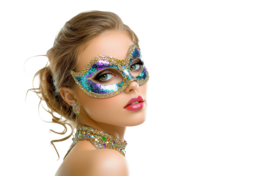 Venetian carnival mask black color isolated Transparent background, PNG.
