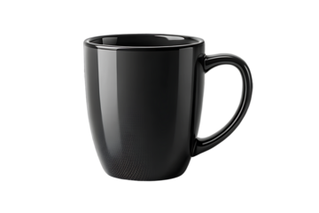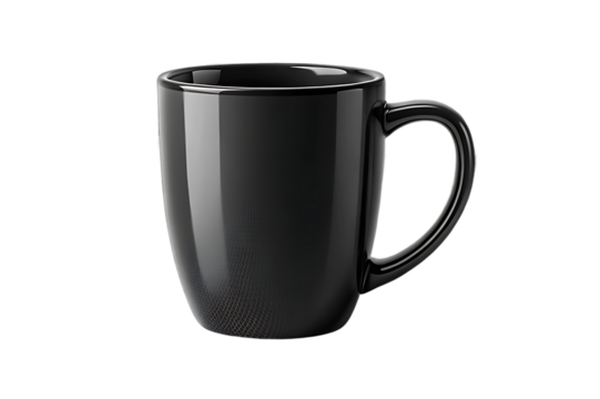 Minimalist black ceramic mug with a matte finish and a modern design, ideal for contemporary kitchen decor. Isolated on transparent background