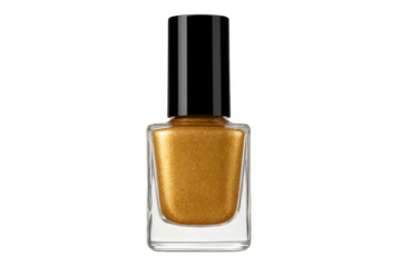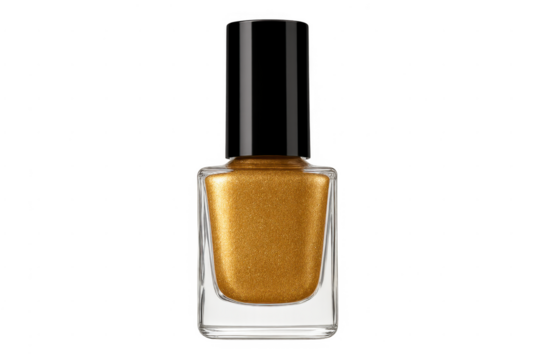 Gold glitter nail polish bottle on transparent background