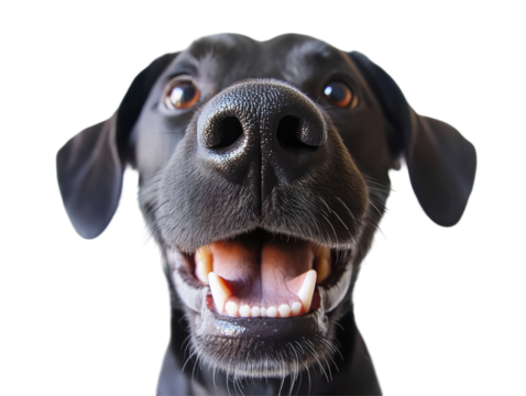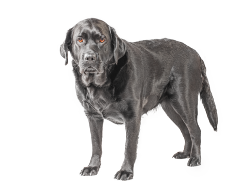 Portrait of an adult black labrador retriever. Dog stands isolated.