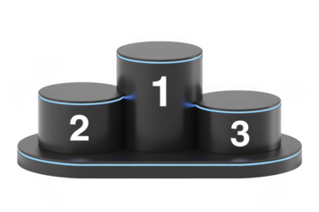 Black podium with numbers on black numbered podium isolated on a transparent background