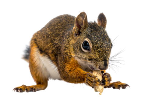 A closeup of a tigers face with its mouth open and teeth bared, isolated on a transparent background