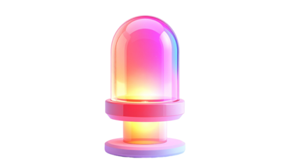 A glowing, stylized glass dome with vibrant color gradients on a black background
