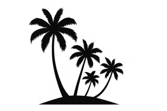 White palm fronds on a black backdrop, stylized with a graphic, outlined appearance