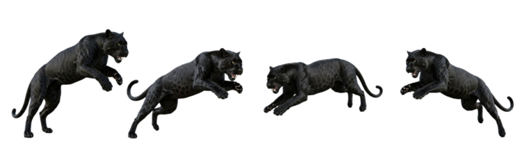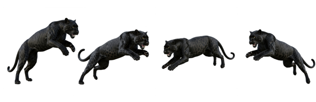 Set Of Black Panther Attacking in action Various Poses isolated on transparent background, Black Panther PNG