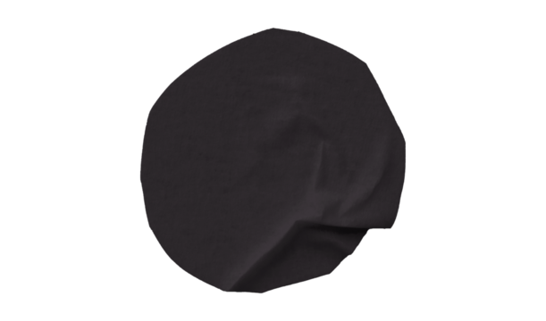 Black circle masking tape sticker with wrinkled edges, separate wrinkled round paper on transparent background.